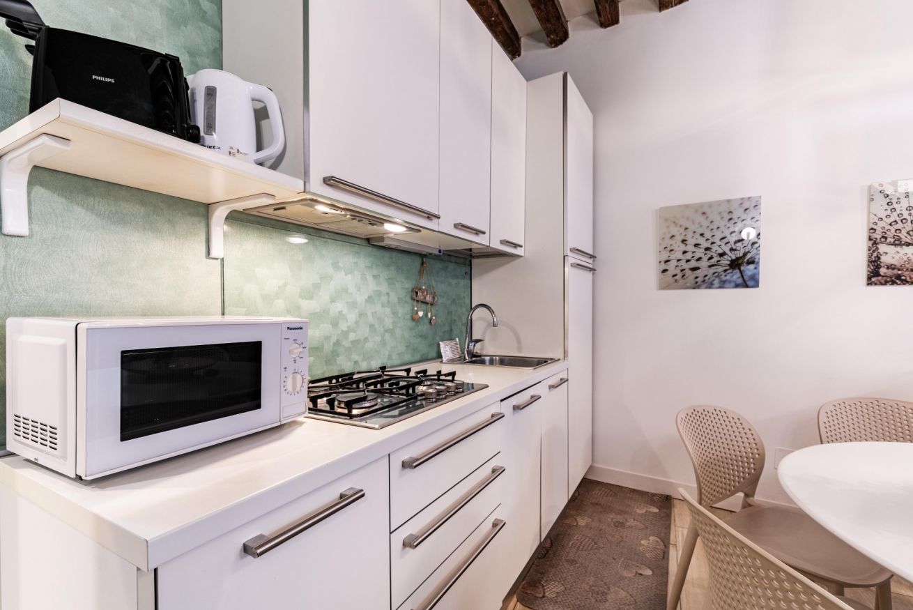 Una soluzione ideale per chi desidera soggiornare in una zona centrale ma tranquilla, con tutti i comfort moderni e il fascino autentico della tradizione veneziana.
