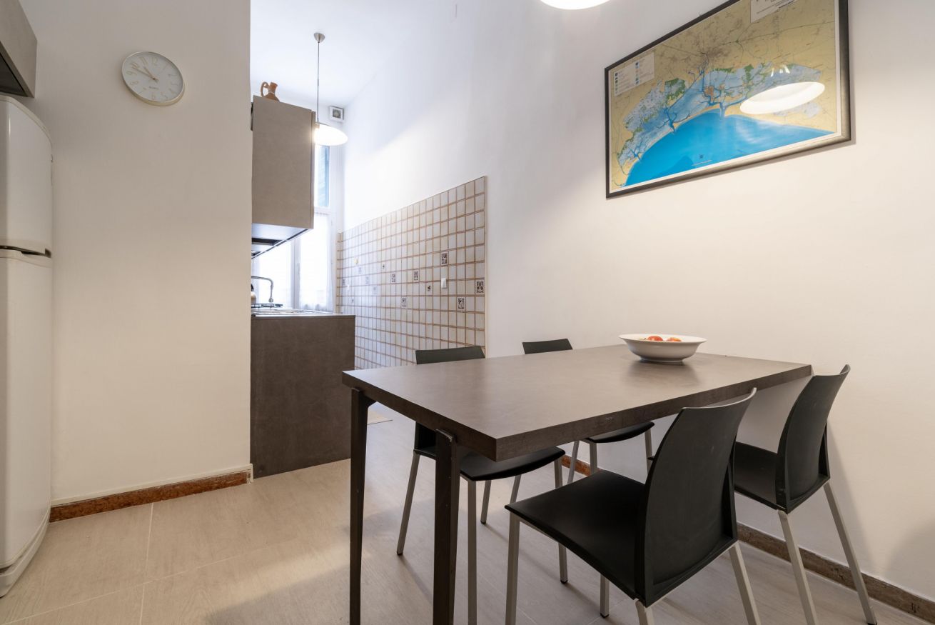 La casa si apre su una cucina completamente attrezzata e separata, ideale per chi ama cucinare anche in vacanza. Proseguendo, si entra in un ampio e luminoso soggiorno, perfetto per rilassarsi: una zona living con divani e poltrone ,uno spazio dedicato al lavoro con scrivania. Le grandi finestre regalano una splendida luce naturale e conducono ai caratteristici poggioli affacciati sul canale e su Campo Ternita da cui prende il nome , ideali per godersi momenti di tranquillità.